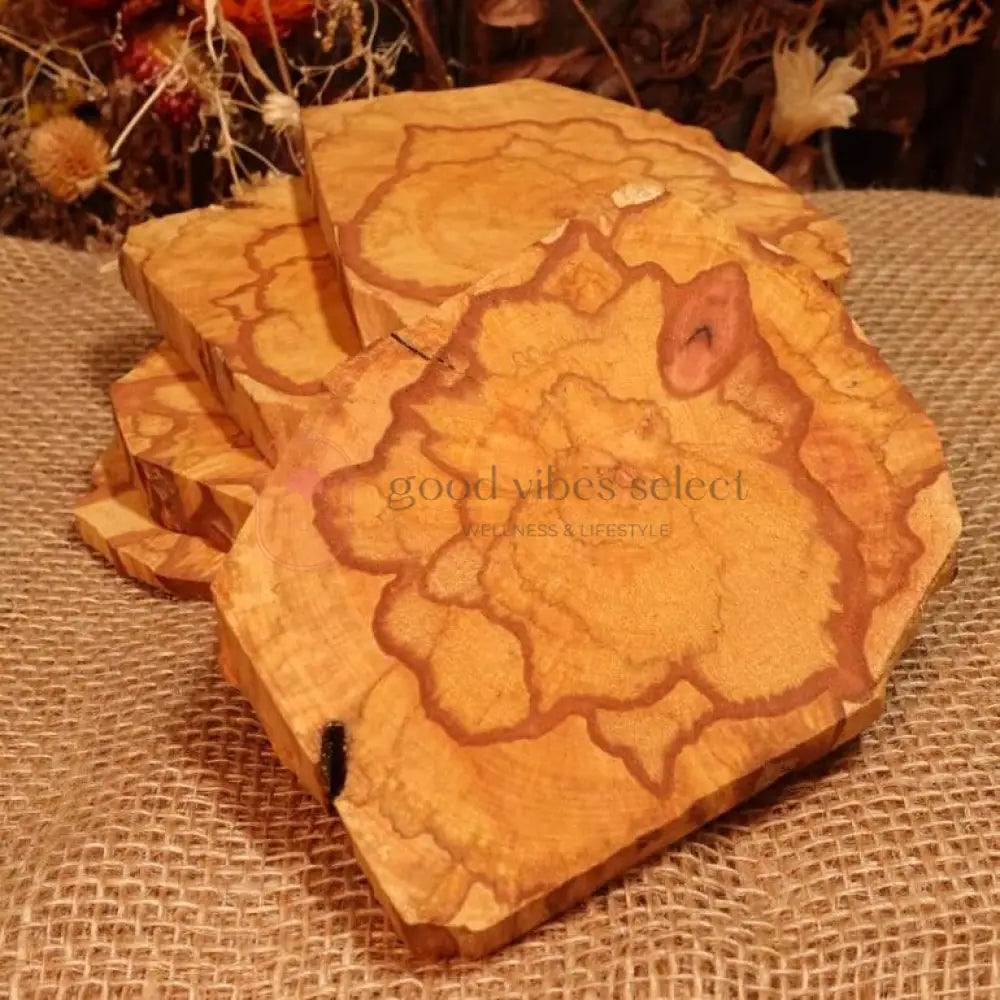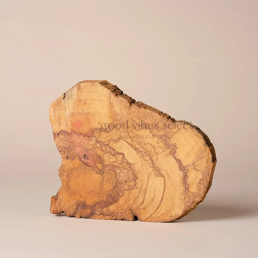 - 聖木片上的天然油花線展現珍貴的天然歲月的痕跡,亦可作為家居裝飾品之用